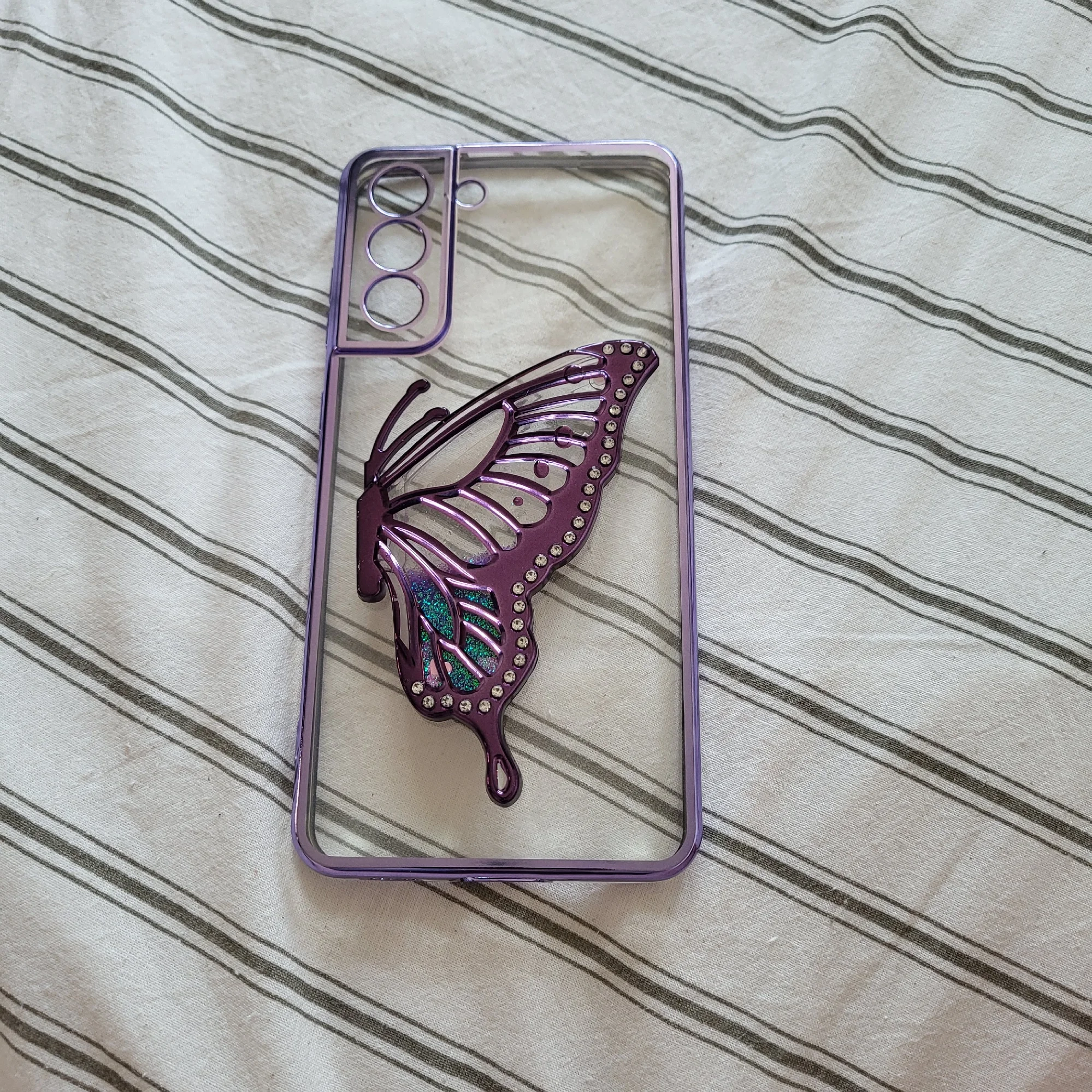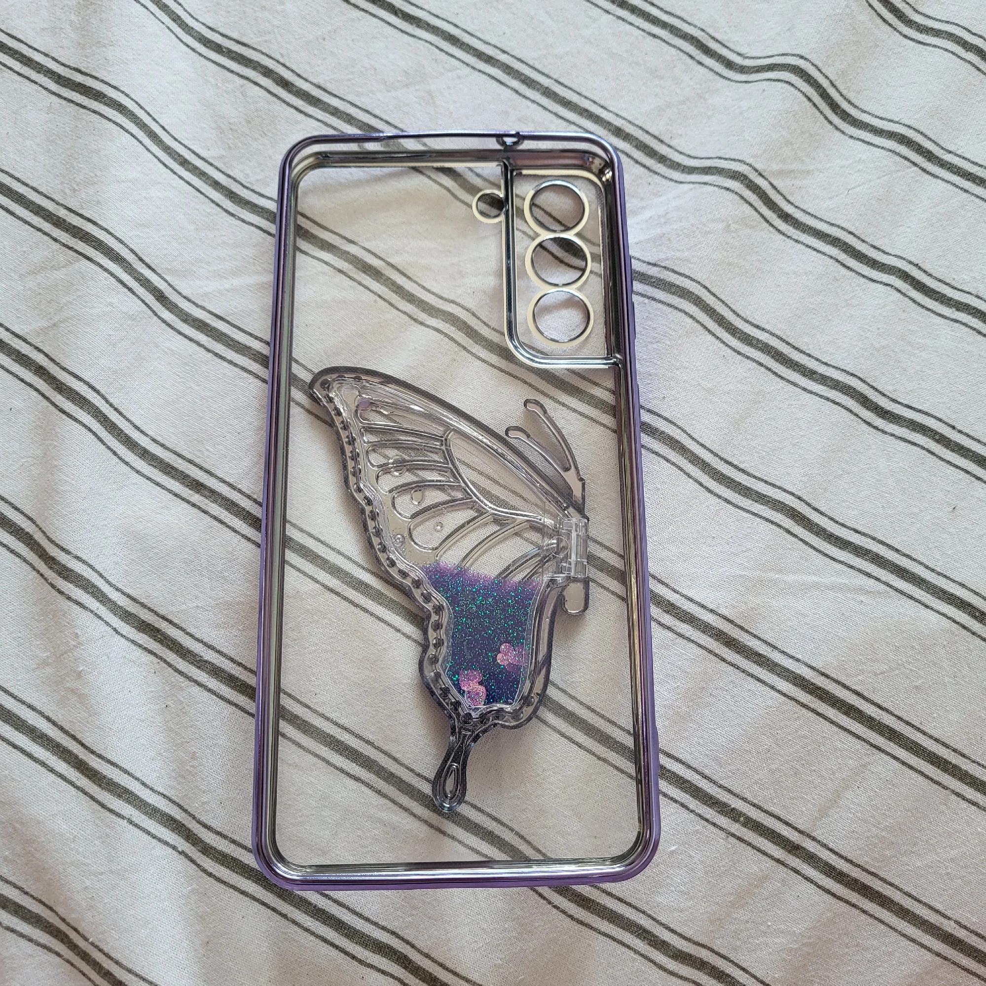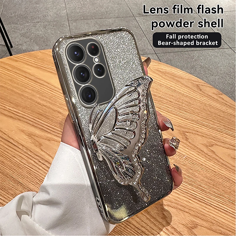 3D Liquid Sand Butterfly Phone Holder Glitter Plating Case For Samsung Galaxy S25 S24 Plus S23 FE S22 Note 20 Ultra S20 S21 FE