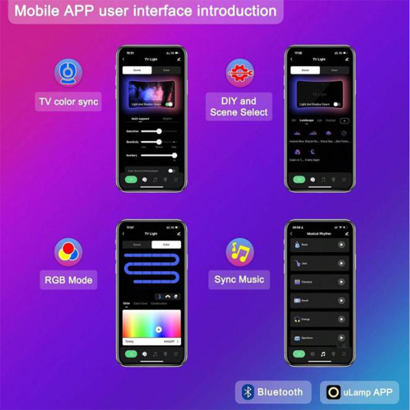 Features: TV screen synchronization intelligence (lights follow the TV screen display color automatically synchronize color)