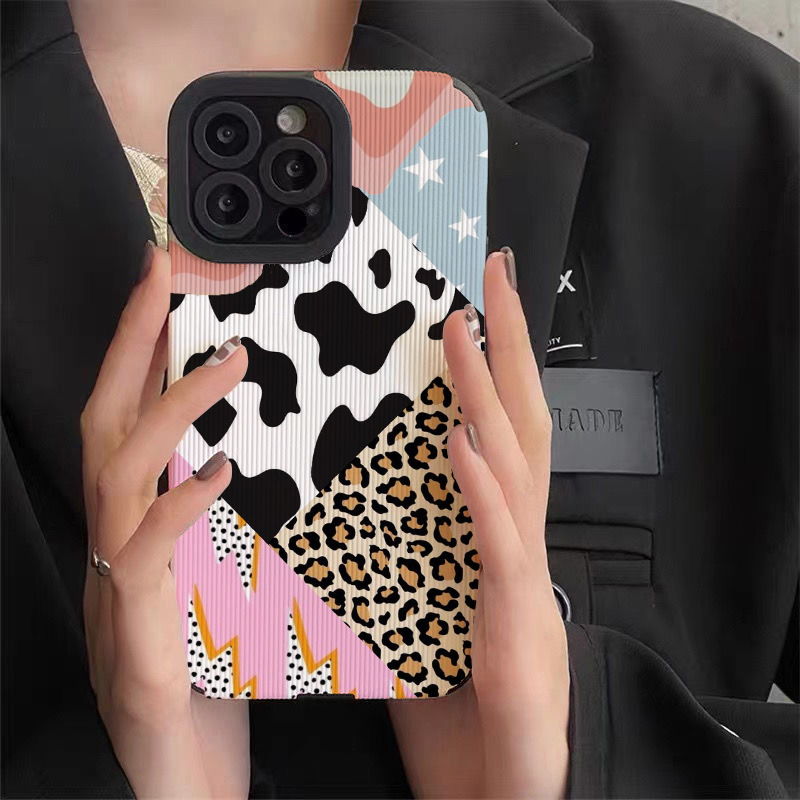 Creative Leopard Cow Silicone Leather Case For iPhone 16 15 14 13 Pro Max 11 12 Mini SE 7 8 Plus X XR XS Soft Shockproof Cover