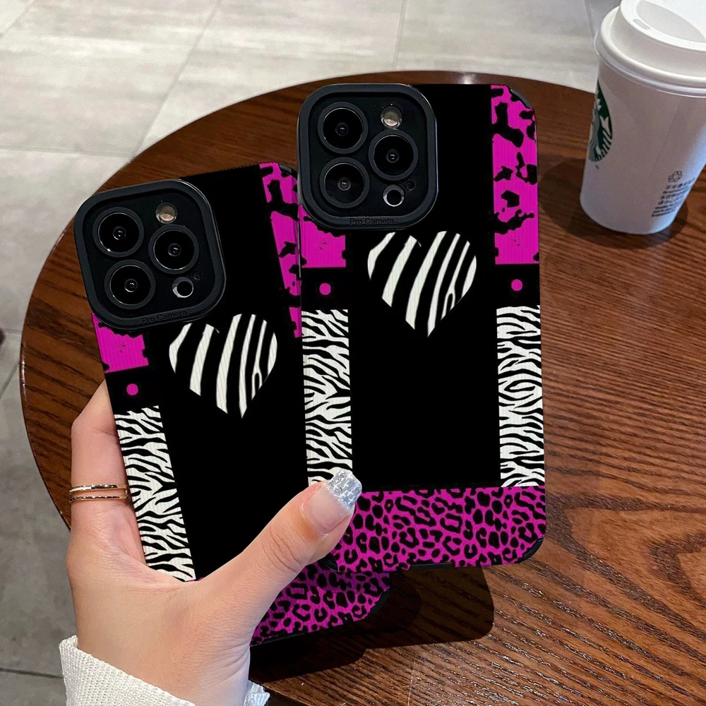 Creative Leopard Love Silicone Leather Case For iPhone 16 13 14 15 Pro Max Plus 11 12 Mini X XS XR 7 8P Shockproof Full Cover