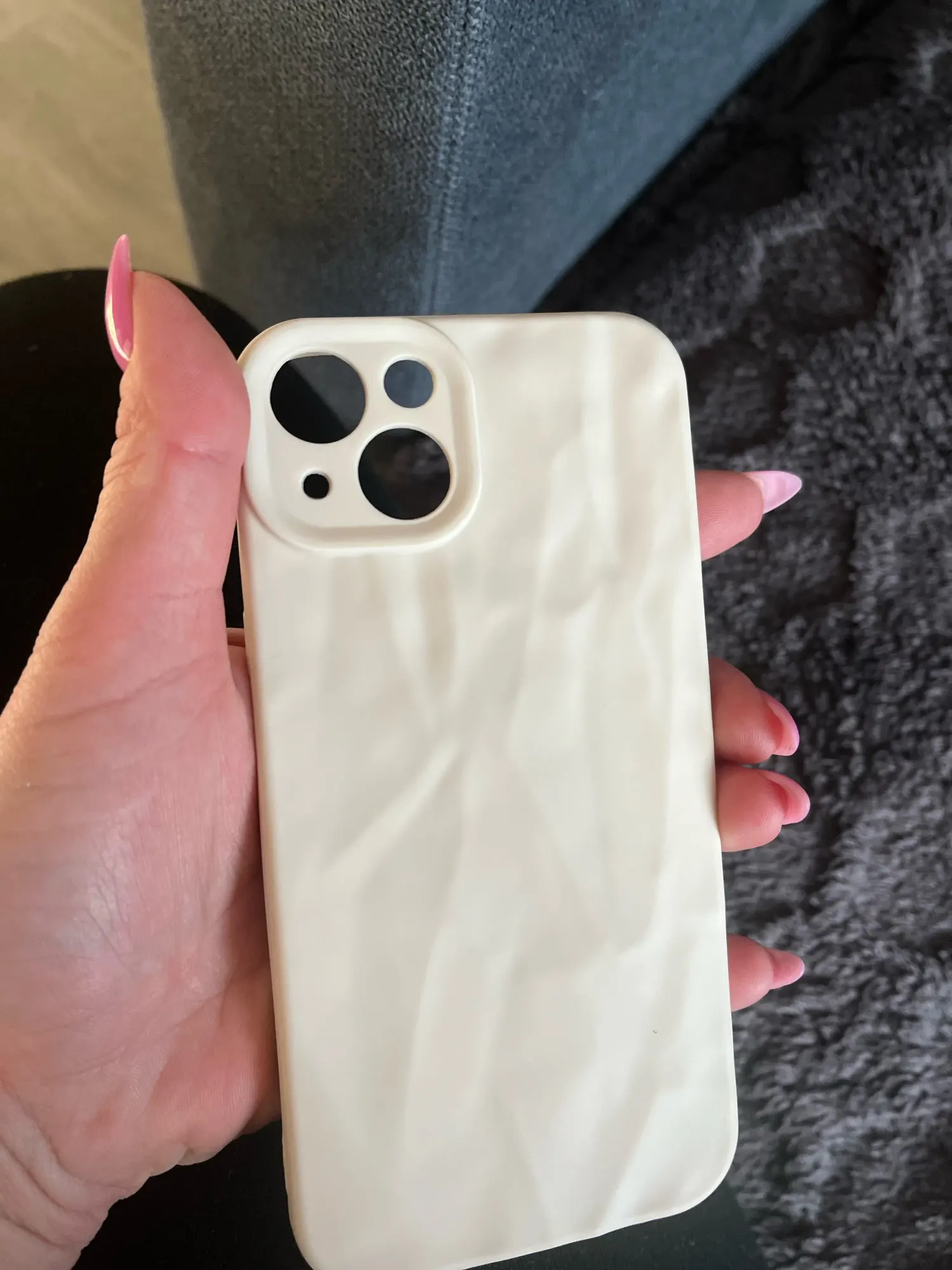 Fast delivery. The case is super, soft, nice to hold. Light - it will get dirty, but I think it will be possible to wash it off.