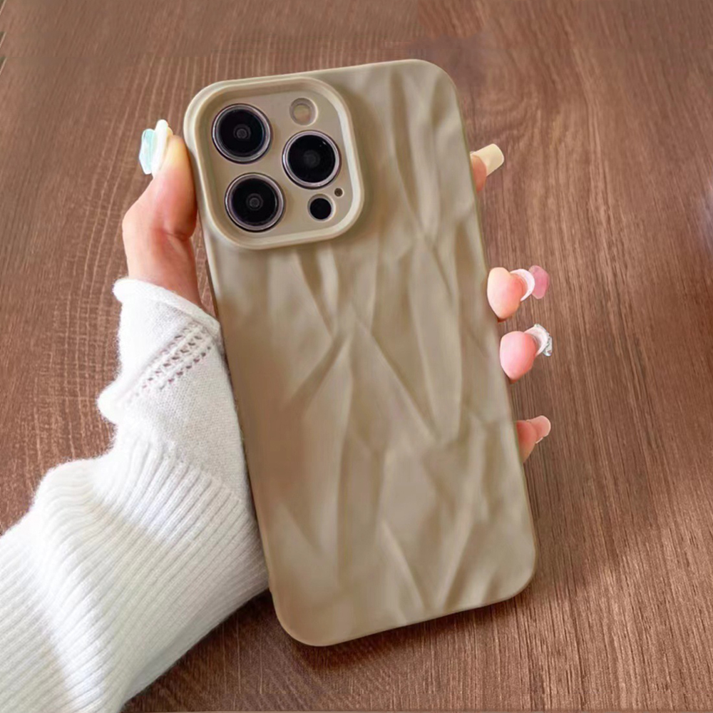 Fashion Silicone Fold Wrinkle Phone Case For iPhone 16 14 13 12 11 15 Pro Max SE X XS XR 8 7 Plus Soft Candy Color Full Cover