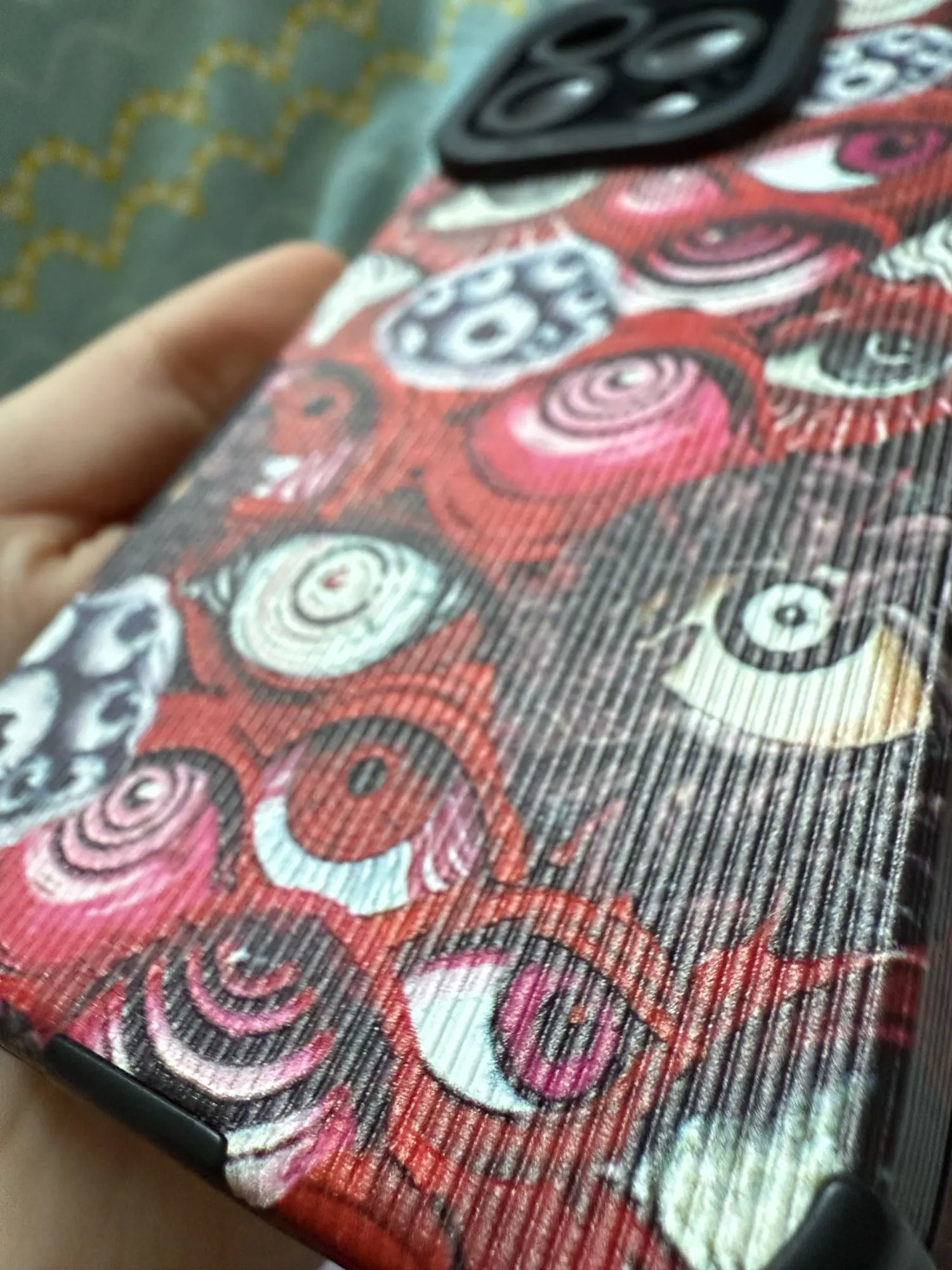 ribbed, but pleasant. золото fits in the hand. not heavy. The circle with the ring was glued on for convenience. They were afraid that it would not work out due to the surface texture. all OK. It closes everything you need, buttons can be easily pressed. Delivery in general on time