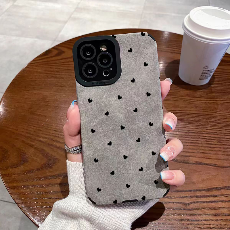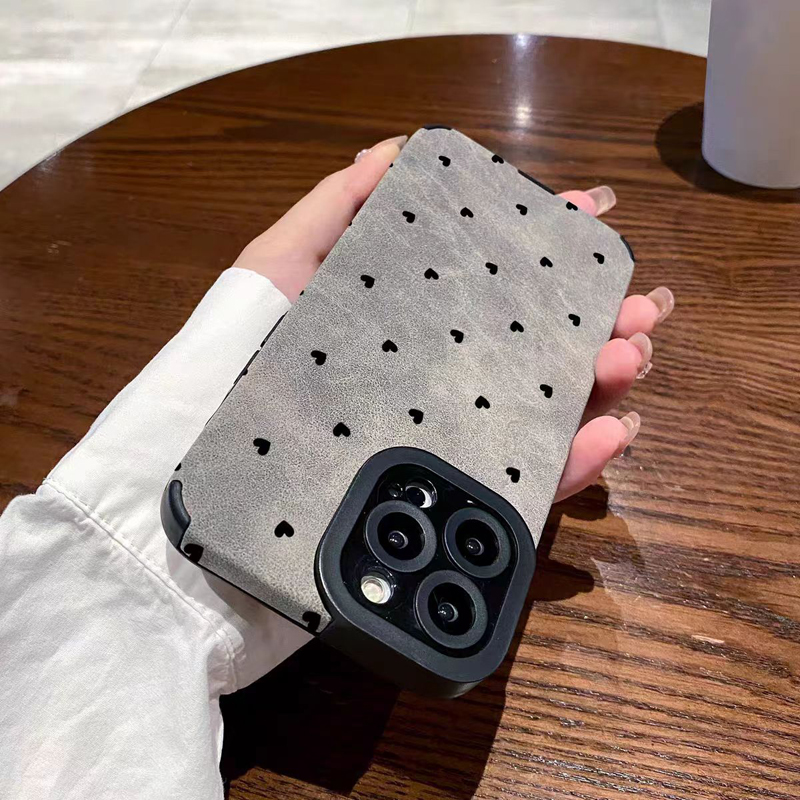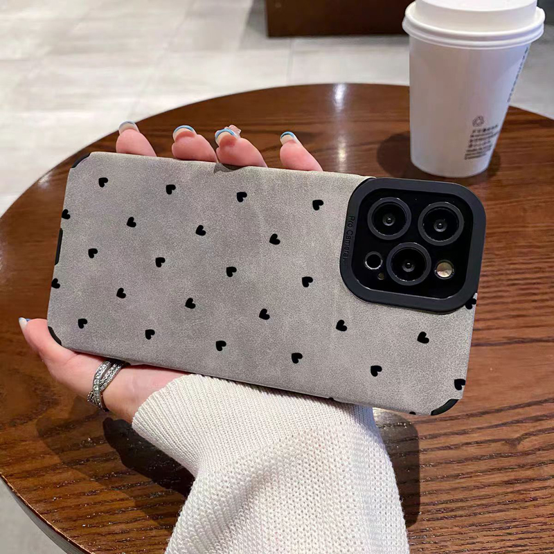 Gray Silicone Leather Little Love Heart Case For iPhone 13 16 15 Pro Max 14 Plus 11 12 Mini X XS XR 7 8 SE Soft Matte Full Cover