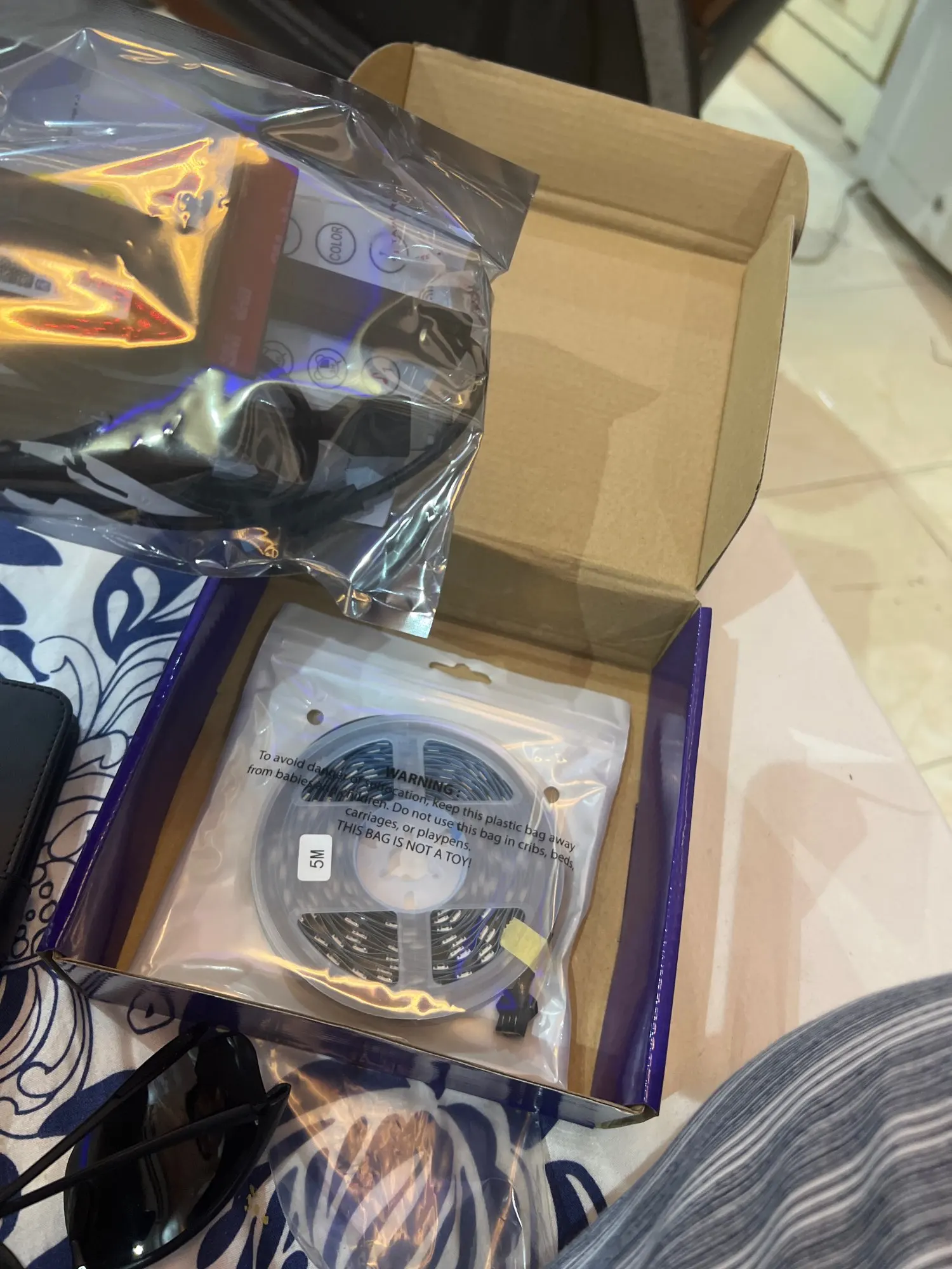 Everything arrived super well, I just don't think it will work properly since my screen is 65" and the tape is 5 mts... It won't stay on the entire screen. They should also set measurements in inches for the purchase to be successful.