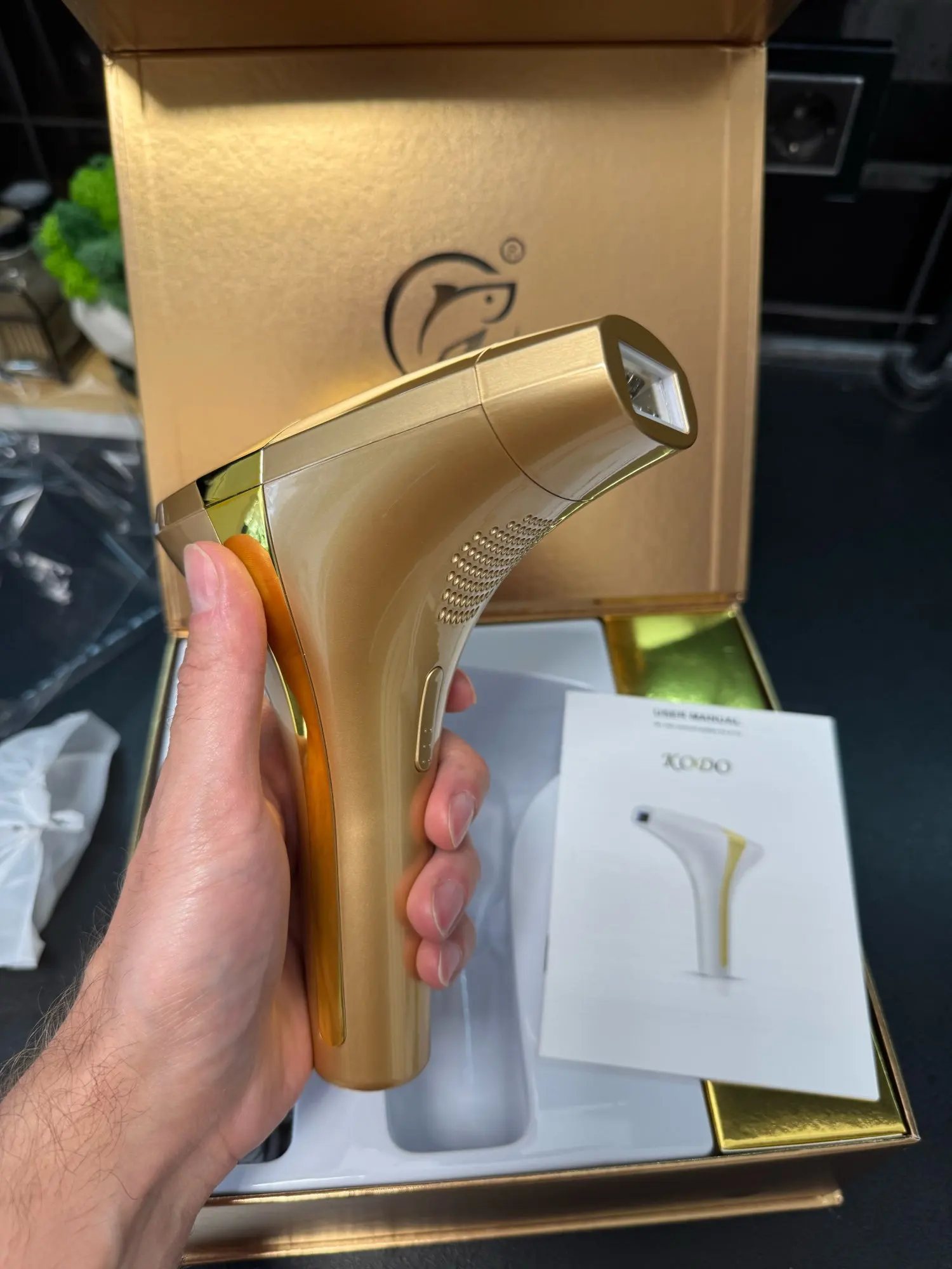 Shipped the next day after payment. Delivered to Kyiv in 11 days. Beautiful packaging. Everything received intact and complete, in working condition. We tried its operation in the bikini area at maximum power - different points have different sensations, from slightly unpleasant hot to no sensation at all. As a result of the first use, the tips of the short hair strands, recommended length 3 mm, were slightly burned. Light skin, black hair, ideal conditions. I expected a greater result. We'll see the difference in a month. You also need to understand the purpose of different attachments. Everyone is happy so far.