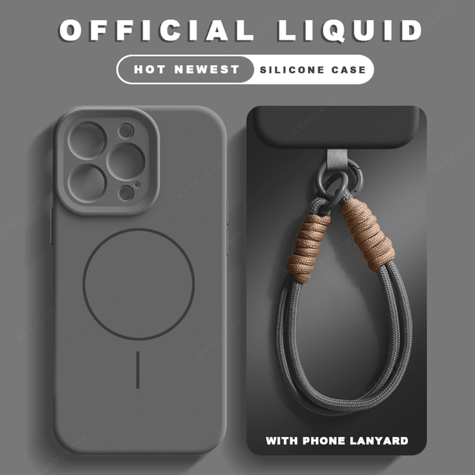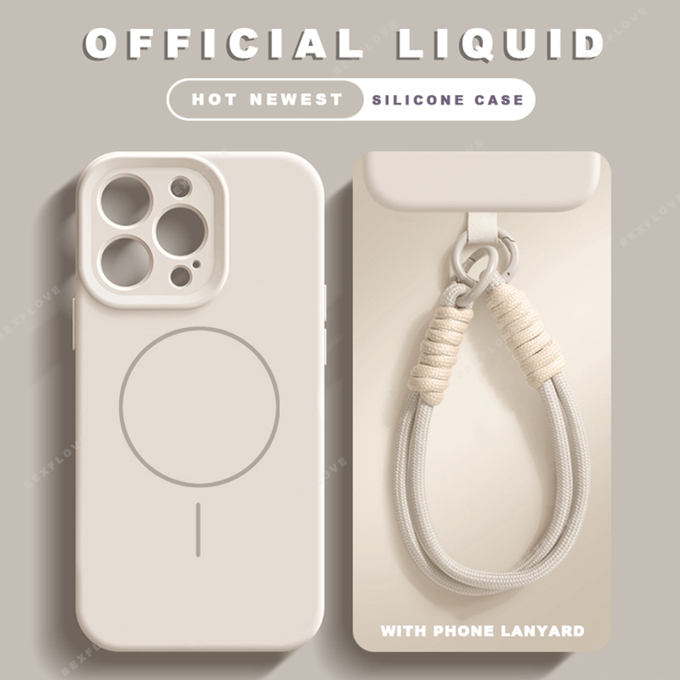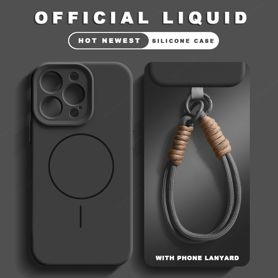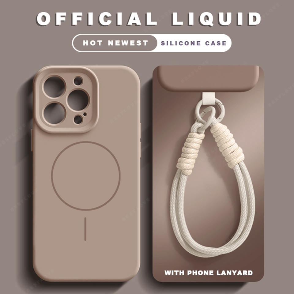 Liquid Silicone Lanyard Magnetic Phone Case For iPhone 16 14 15 Plus 11 12 13 16 Pro Max Magsafe Charge Strap Protector Cover