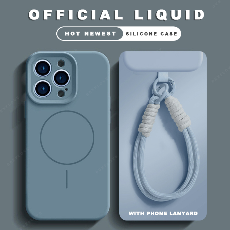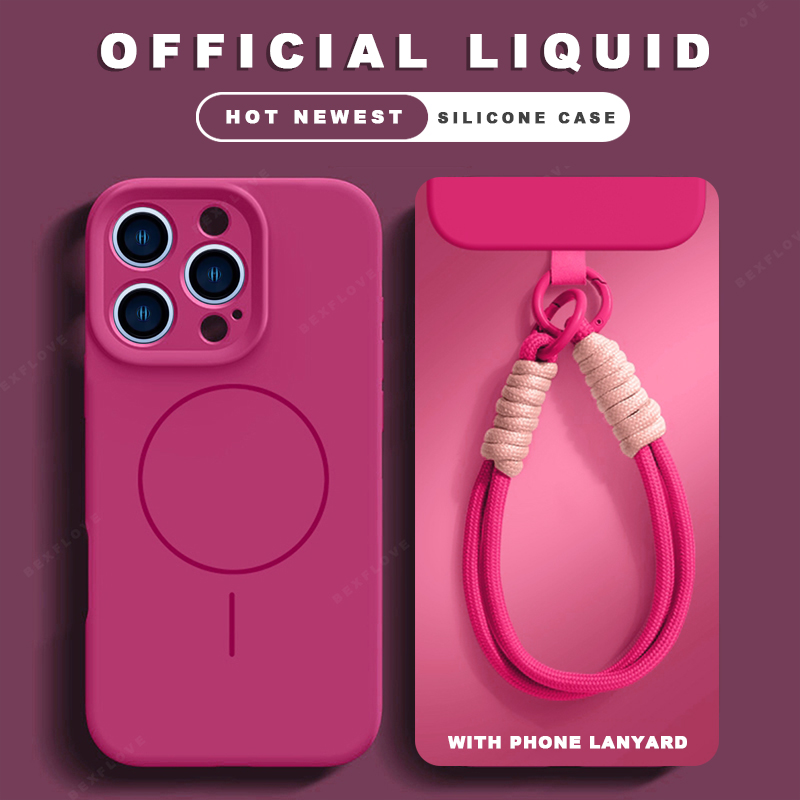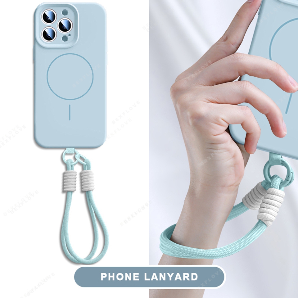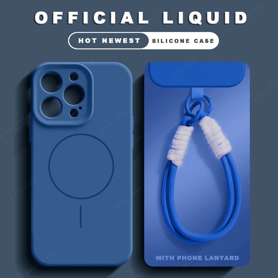 Liquid Silicone Lanyard Magnetic Phone Case For iPhone 16 14 15 Plus 11 12 13 16 Pro Max Magsafe Charge Strap Protector Cover