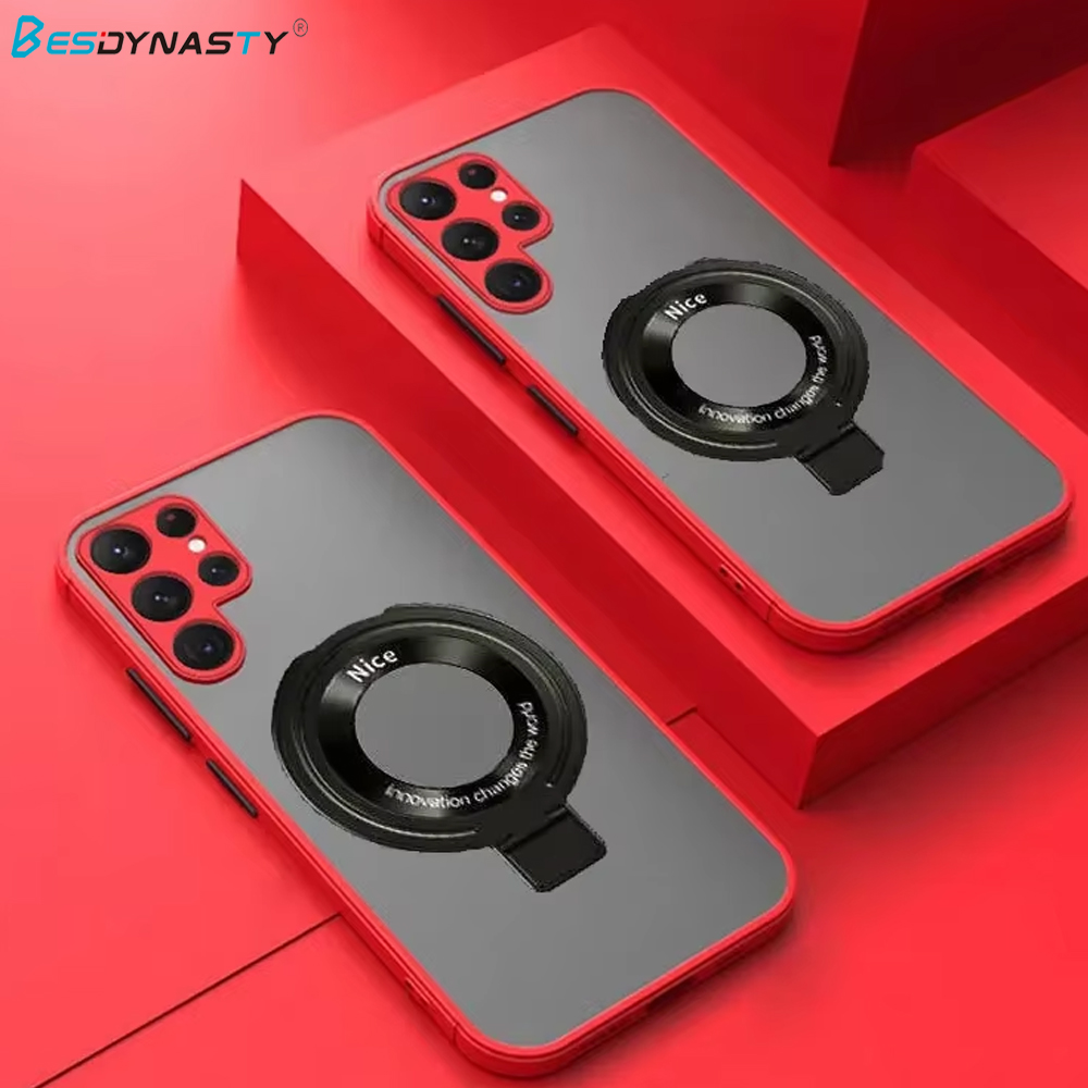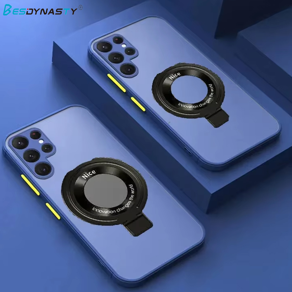 Magnetic holder Matte Translucent Shockproof Case For Samsung Galaxy S24 FE S25 Ultra S23 S22 Plus S20 S21 FE For Magsafe Cover