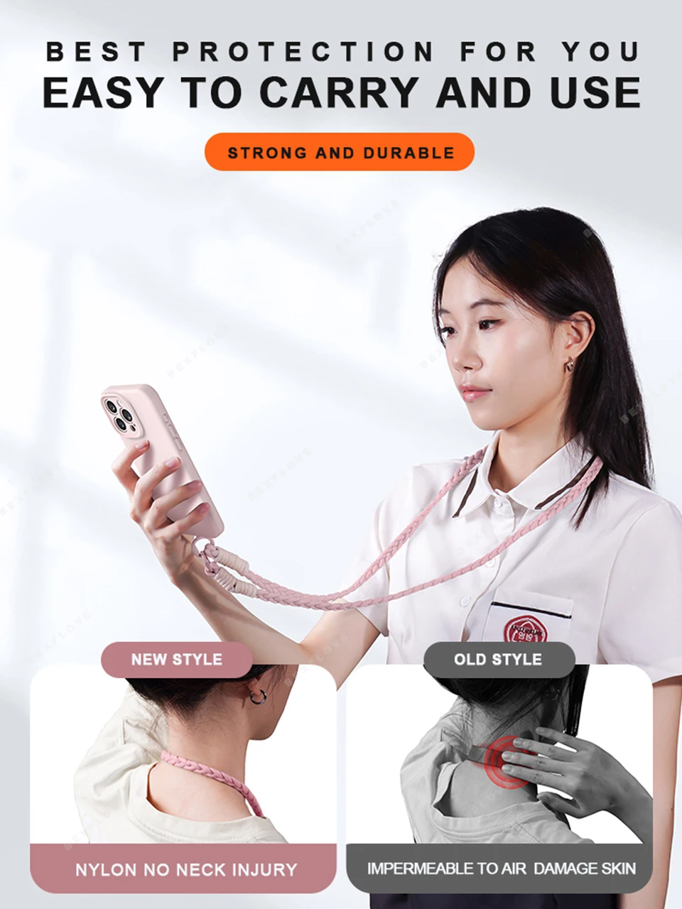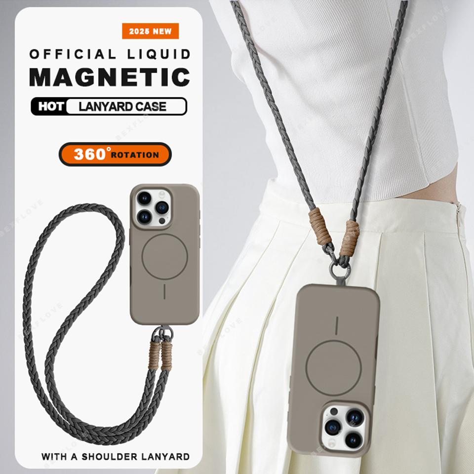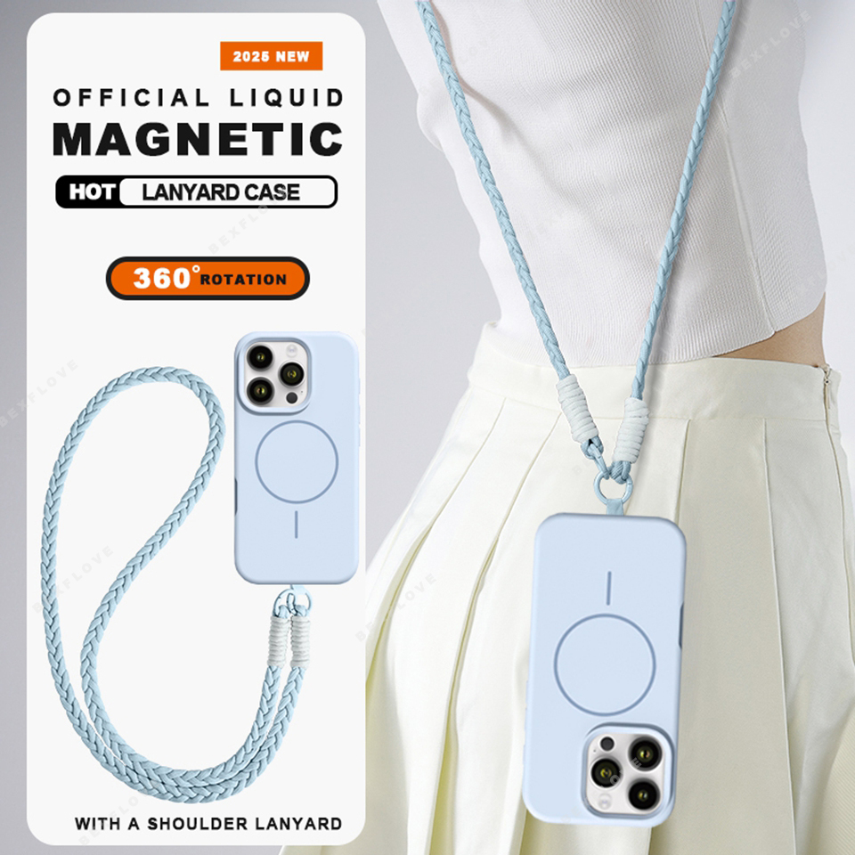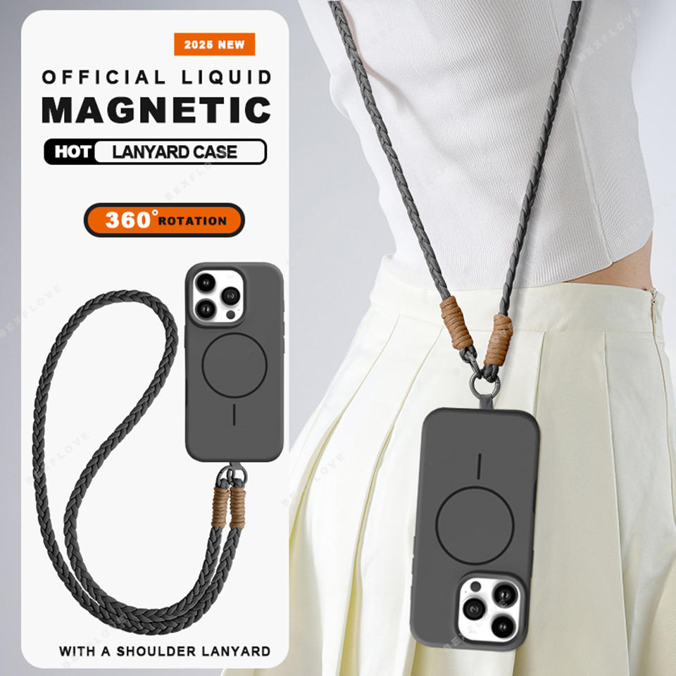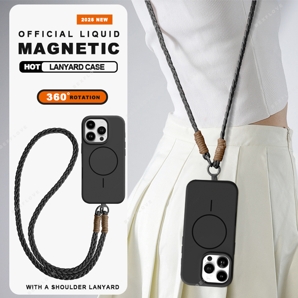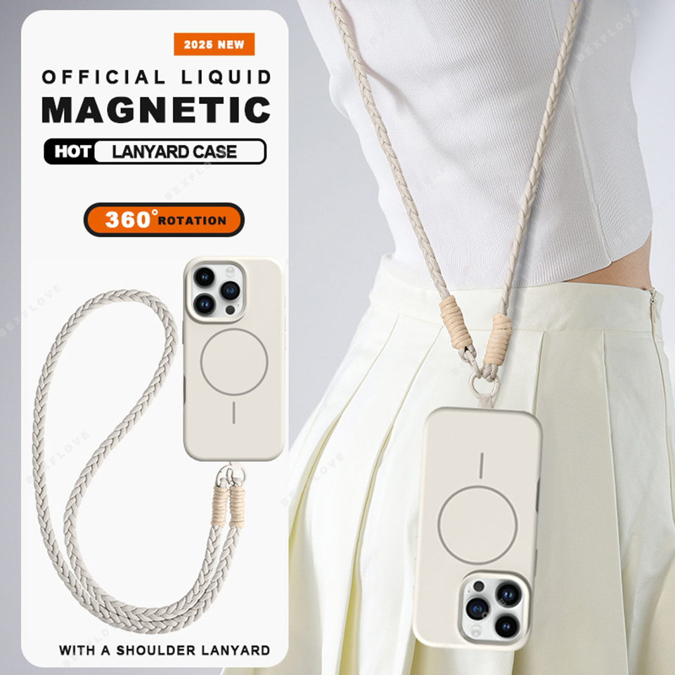 Magnetic Liquid Silicone Lanyard Phone Case For iPhone 15 14 16 Plus 11 12 13 16 Pro Max Magsafe Long Strap Protector Soft Cover