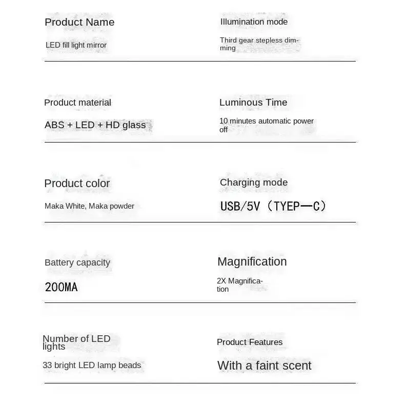 As advertised. Each mirror comes with a usb-c charging cable. Good lighting, 3 different brightness settings. Good for the price.