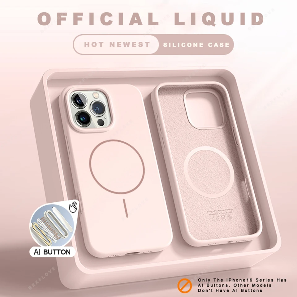 Official Silicone Magsafe Phone Case For iPhone 15 14 16 Plus 11 12 13 16 Pro Max Magnetic Wireless Charge Protector Soft Cover