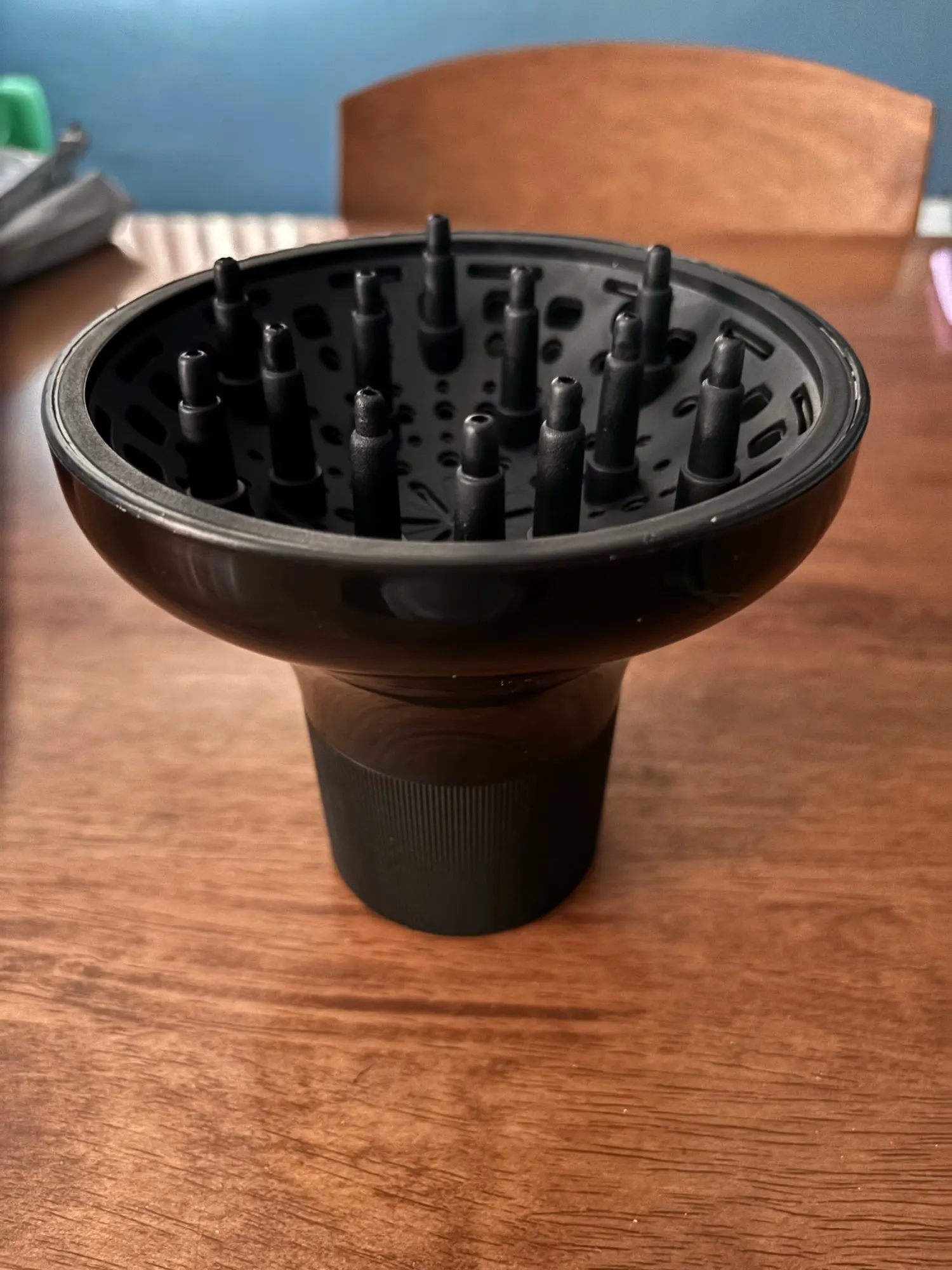 The diffuser arrived in good condition and looks of good quality. The material is resistant, fits well in my dryer, and distributes the air evenly. I have used it several times and it leaves my curls defined, without frizz, and with volume. I liked that it has a deep design, ideal for long or very curly hair. I recommend it!