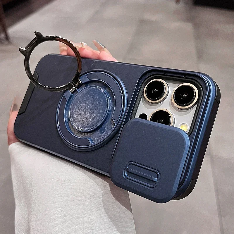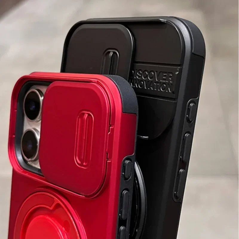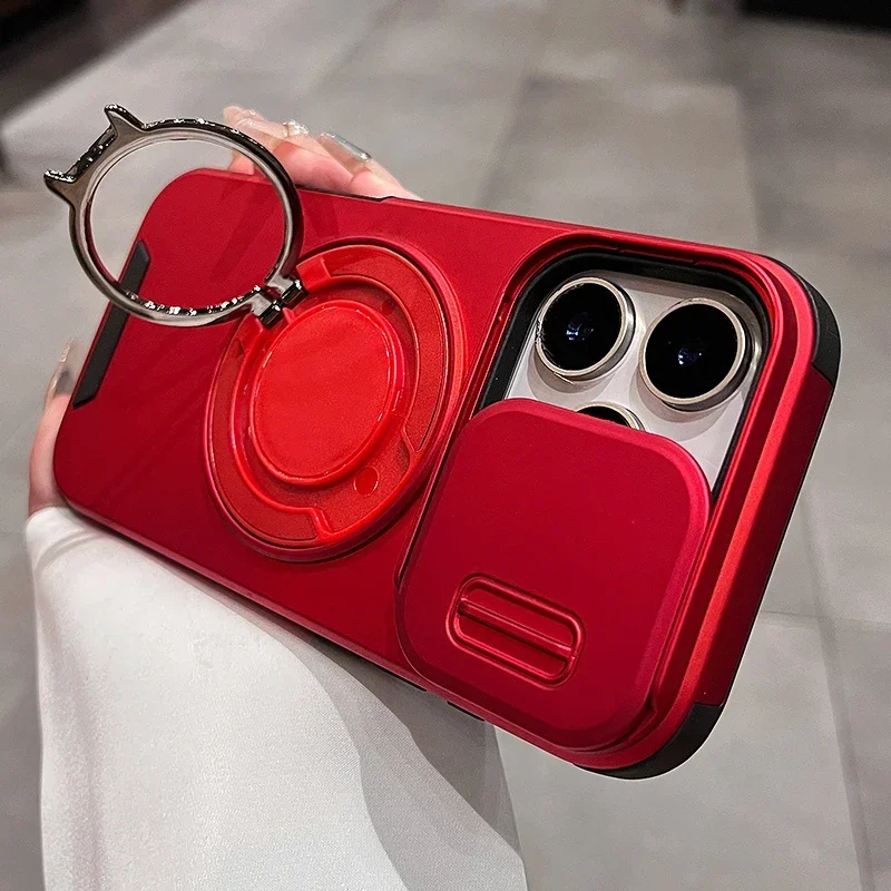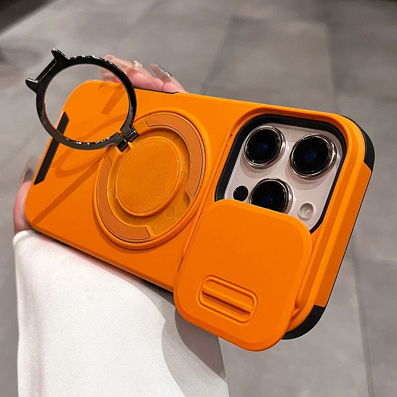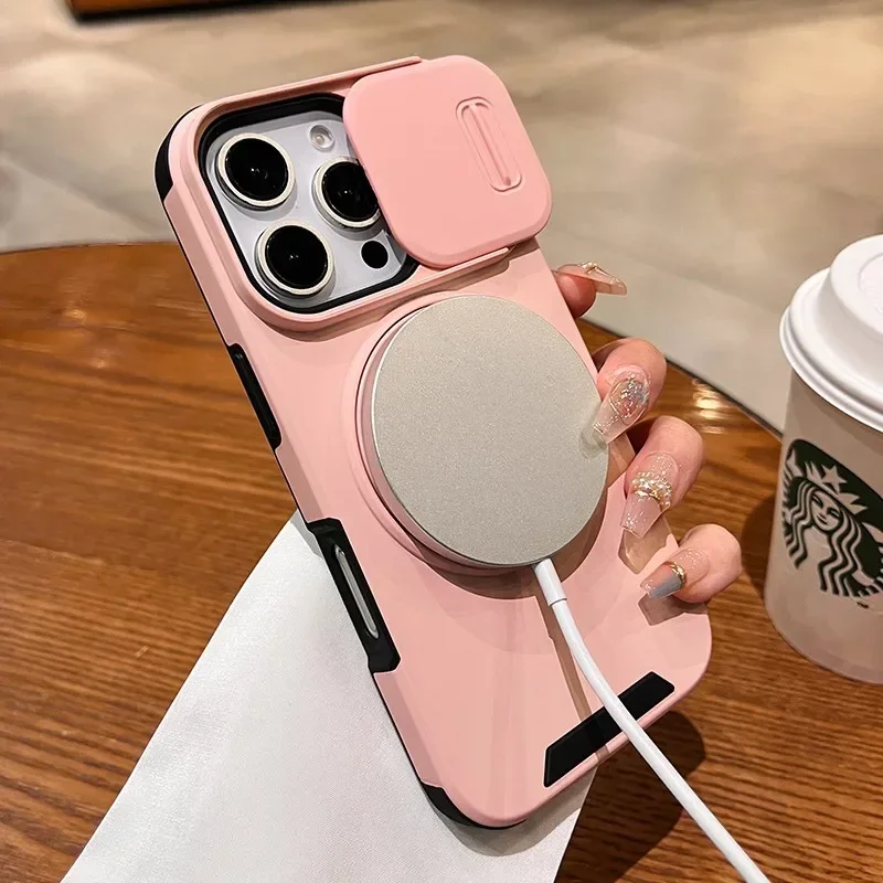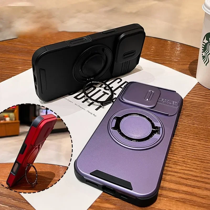 Slide Camera Protection Magnetic Bracket Magsafe Case for iPhone 15 12 11 13 14 16 Pro Max 16 Plus Heavy-Duty Rugged Armor Cover