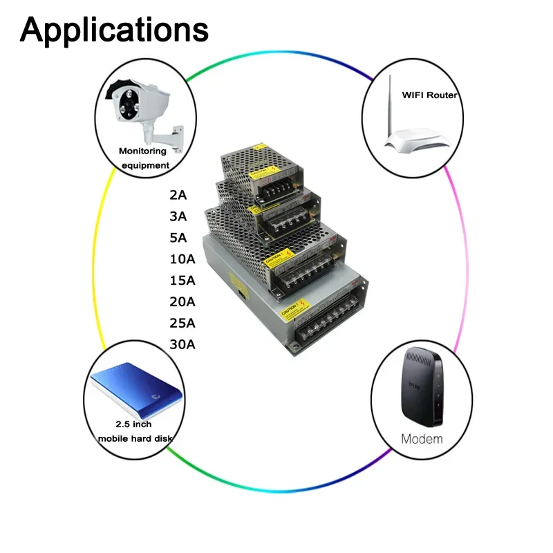 Led Strip 5050, Led Strip 3528/Wireless Router, ADSL Cats, HUB, Switches, Security Cameras.Audio/Video Power Supply.
