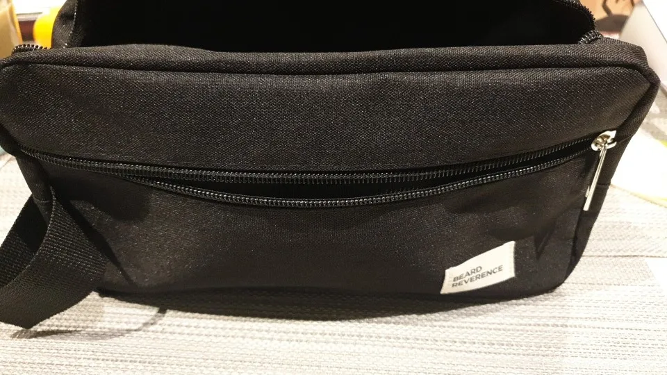 All right. Standard travel bag size. Texture of school case. Waterproof lining inside. Outer pocket. Very practical.