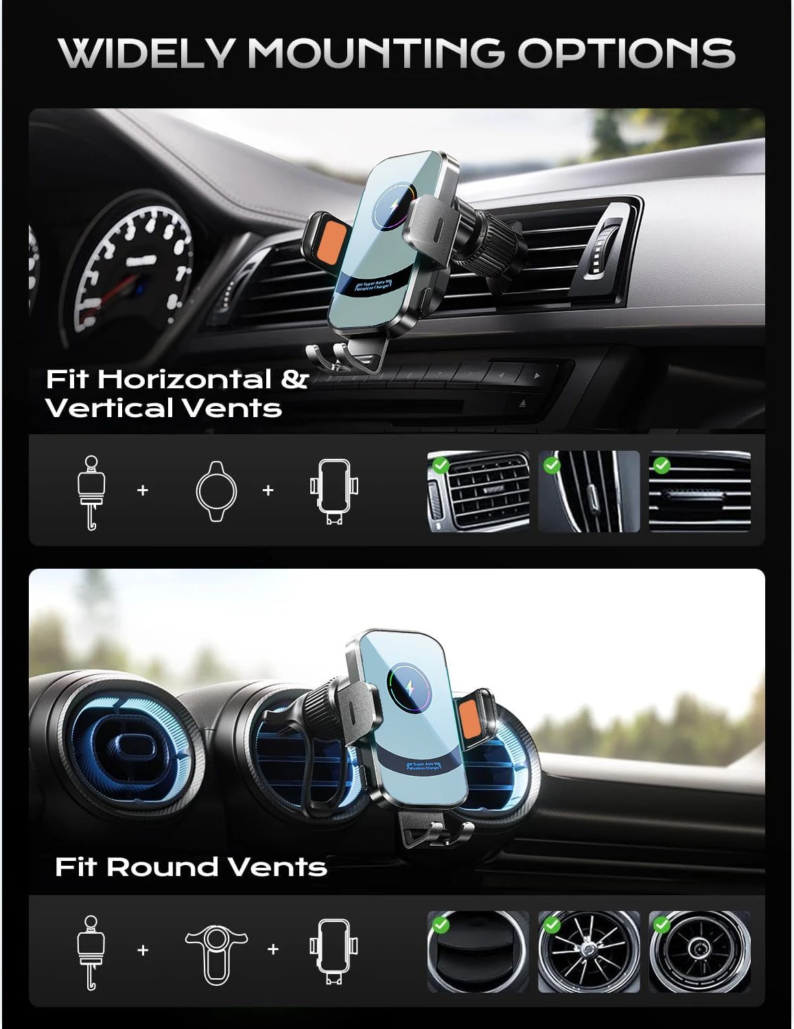 The device in the car does not charge the phone (Apple SE2020) even in standby mode, the indicator shows that charging is in progress. I tried connecting it to the computer's USB to make sure it works. Plus 3% for 2.5 hours. But the claws come off and close very nicely! Minus $20. I do not recommend.