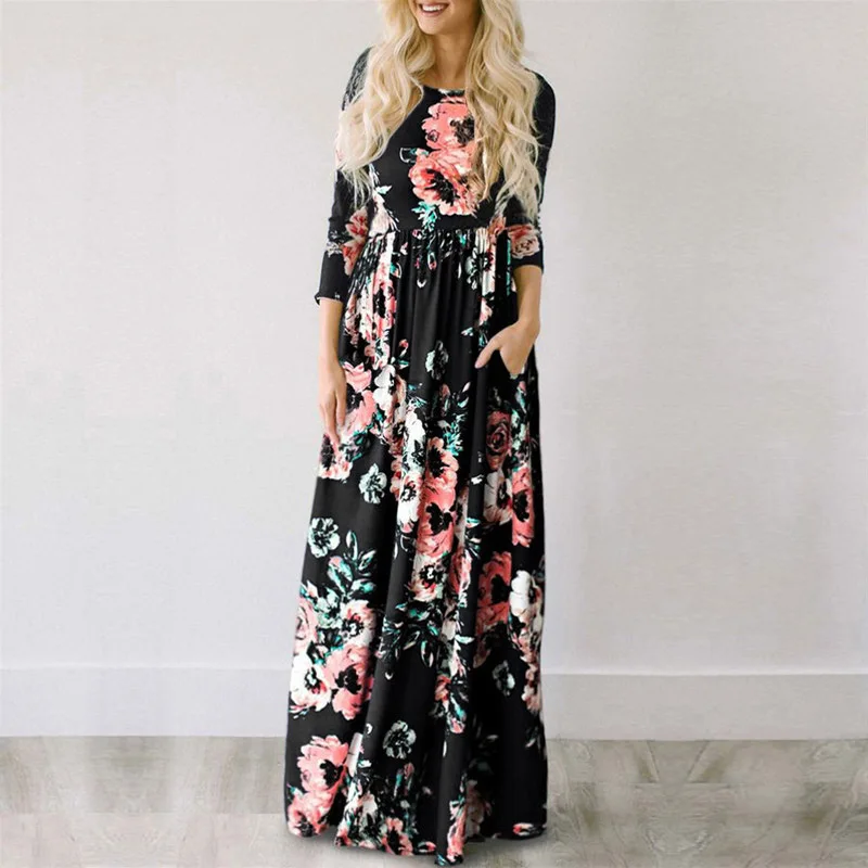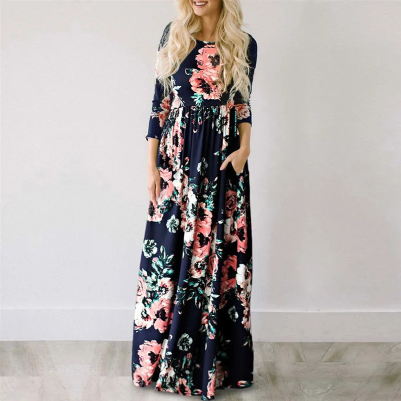 Women Summer Floral Print Maxi 2025 Loose White Boho Beach Dress Women Vintage Evening Party Long Dress Vestidos Female Robe